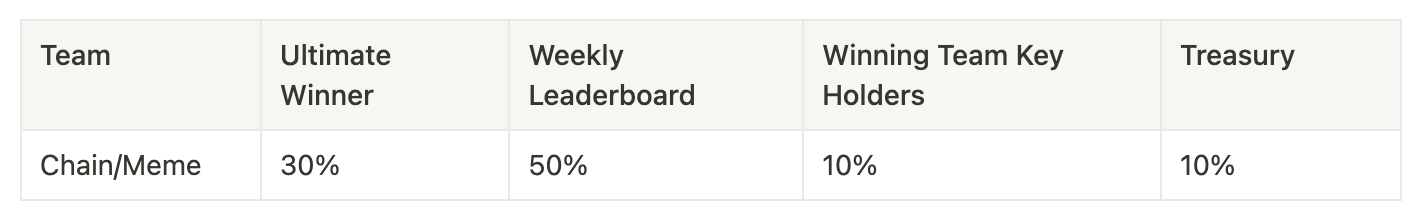 Weekly Leaderboard: The winners on the leaderboard will share 50% of the prize pool according to the following percentage.