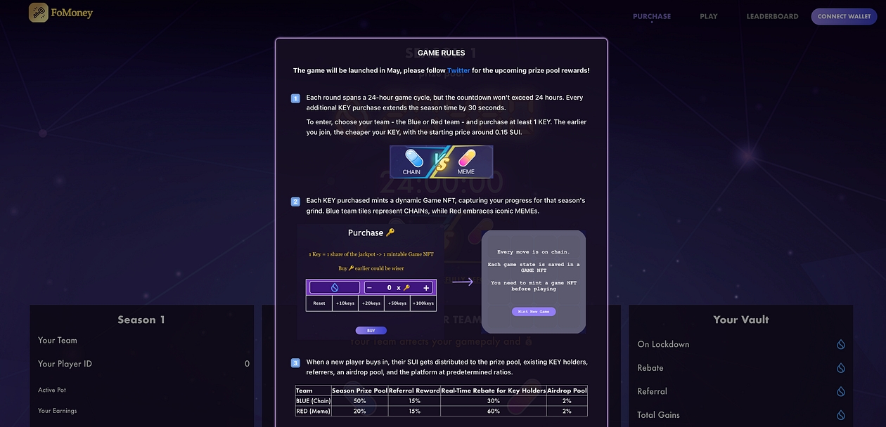 Read the Game Manual to play the FoMoney on Sui Testnet