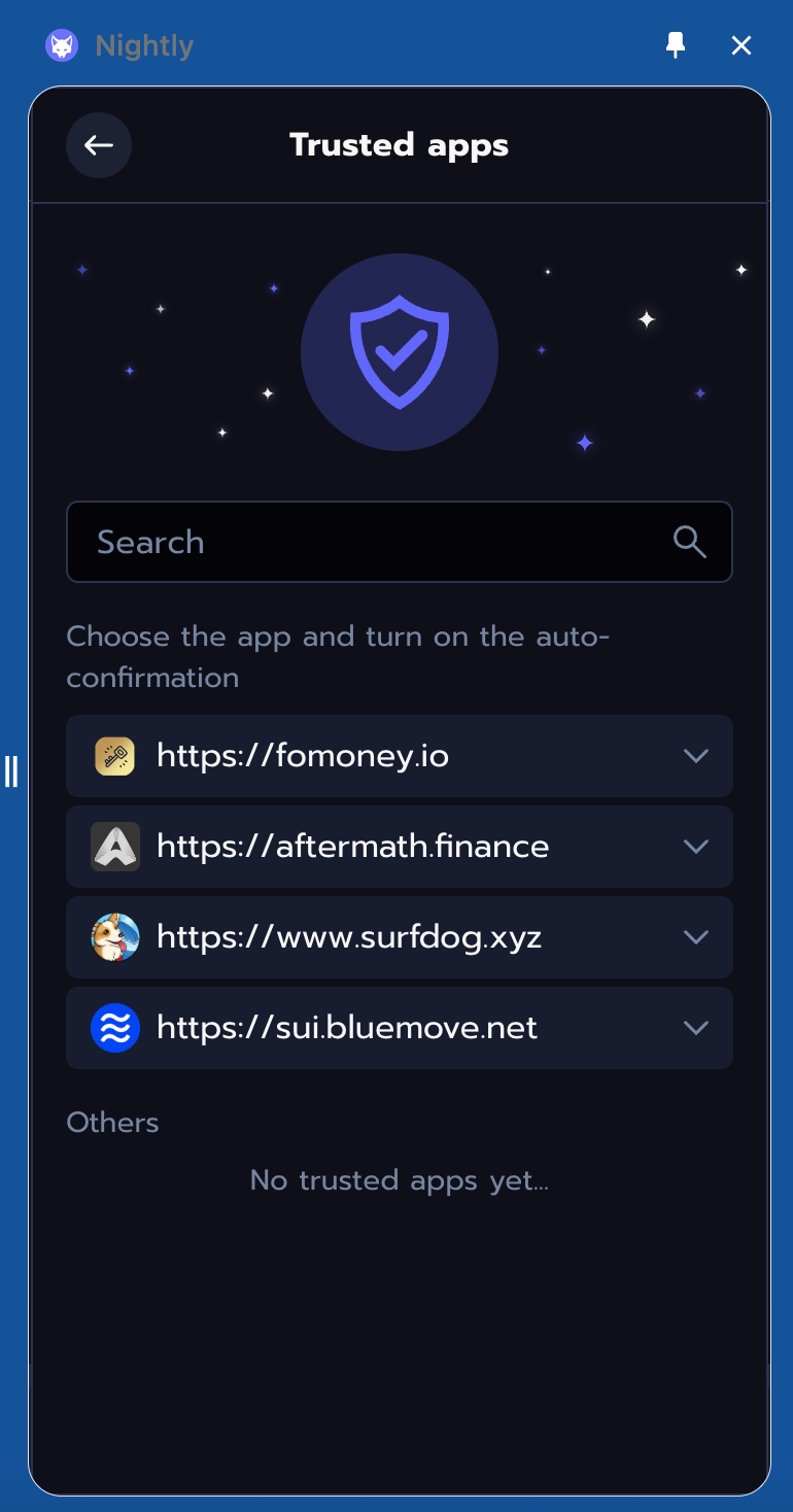 Turn on the Auto-confirm function on Nightly and set your desired time period to simplify the transaction approval process.