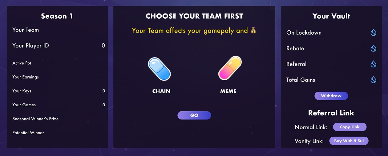 As a player, you’ll choose to join either the [Chain team] or the [Meme team] and remain loyal to your team throughout the season.