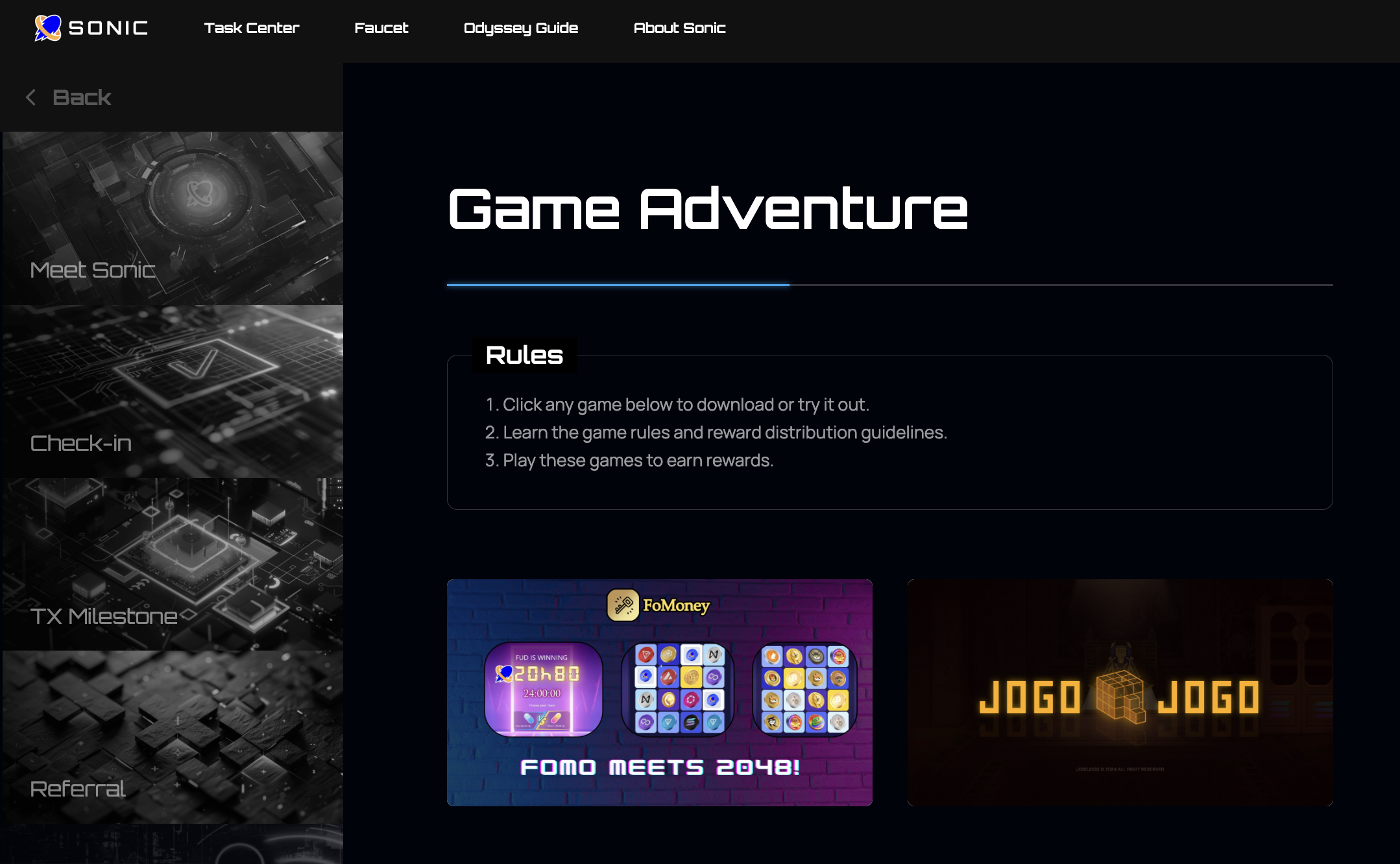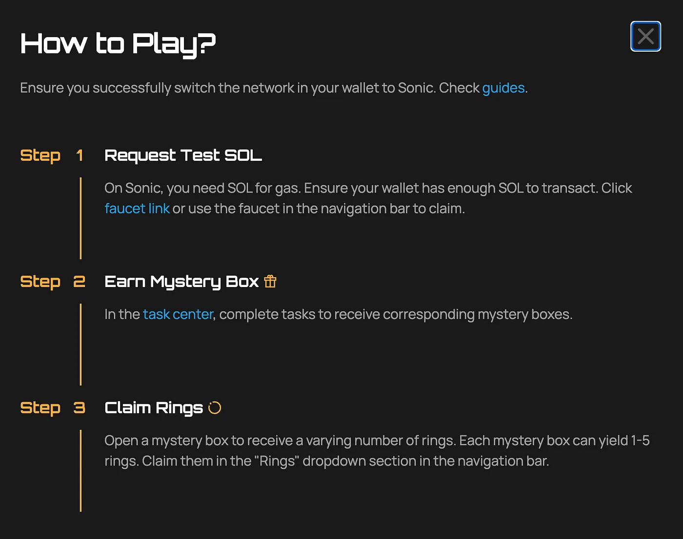 Learn more about the details here: <https://blog.sonic.game/sonic-testnet-odyssey-guide>