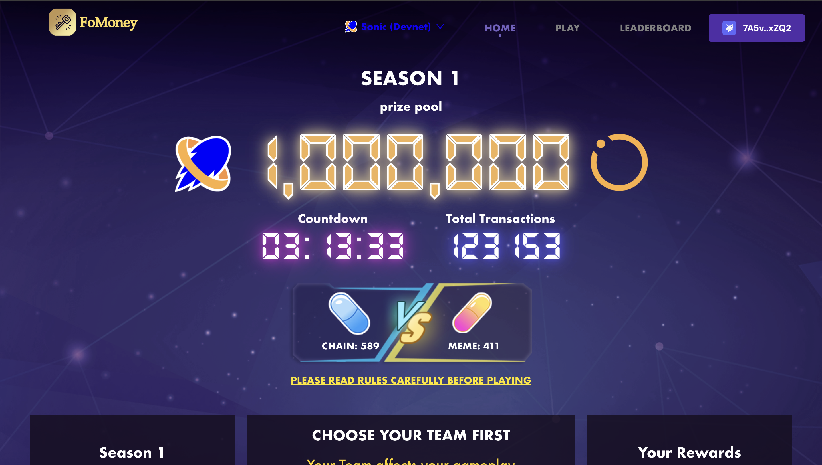 Read the Game Rules carefully before playing! Choose your team from Chain or Meme; you cannot switch your team for all seasons.